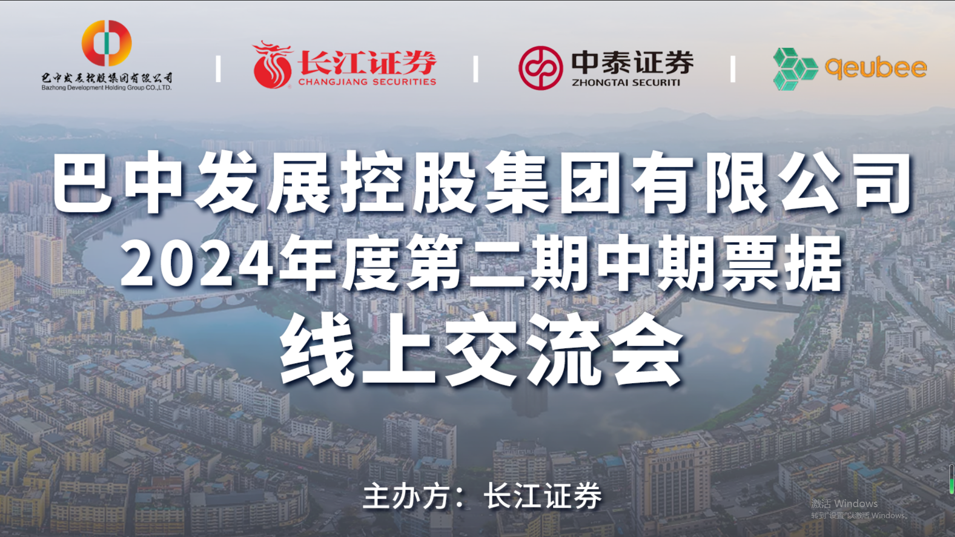 2024年4月16日,巴中發(fā)展集團成功舉行2024年度第二期中期票據(jù)債券投資人線上交流會,集團副總經(jīng)理楊禮旗就集團主營業(yè)務、發(fā)展前景和未來融資計劃等方面作詳細推介,活動邀請東吳證券、國信證券、浙商證券等50多家金融機構(gòu)參加。本次推介的成功舉辦,增進了投資人對巴中地區(qū)及巴中發(fā)展集團的了解,促進了企業(yè)與金融機構(gòu)的高效互動,增強了廣大投資人的信心,讓更多投資人看到巴中發(fā)展集團的前景和投資價值,推動集團更好地運用債券市場,降低融資成本,防范債務風險,助力集團高質(zhì)量發(fā)展。