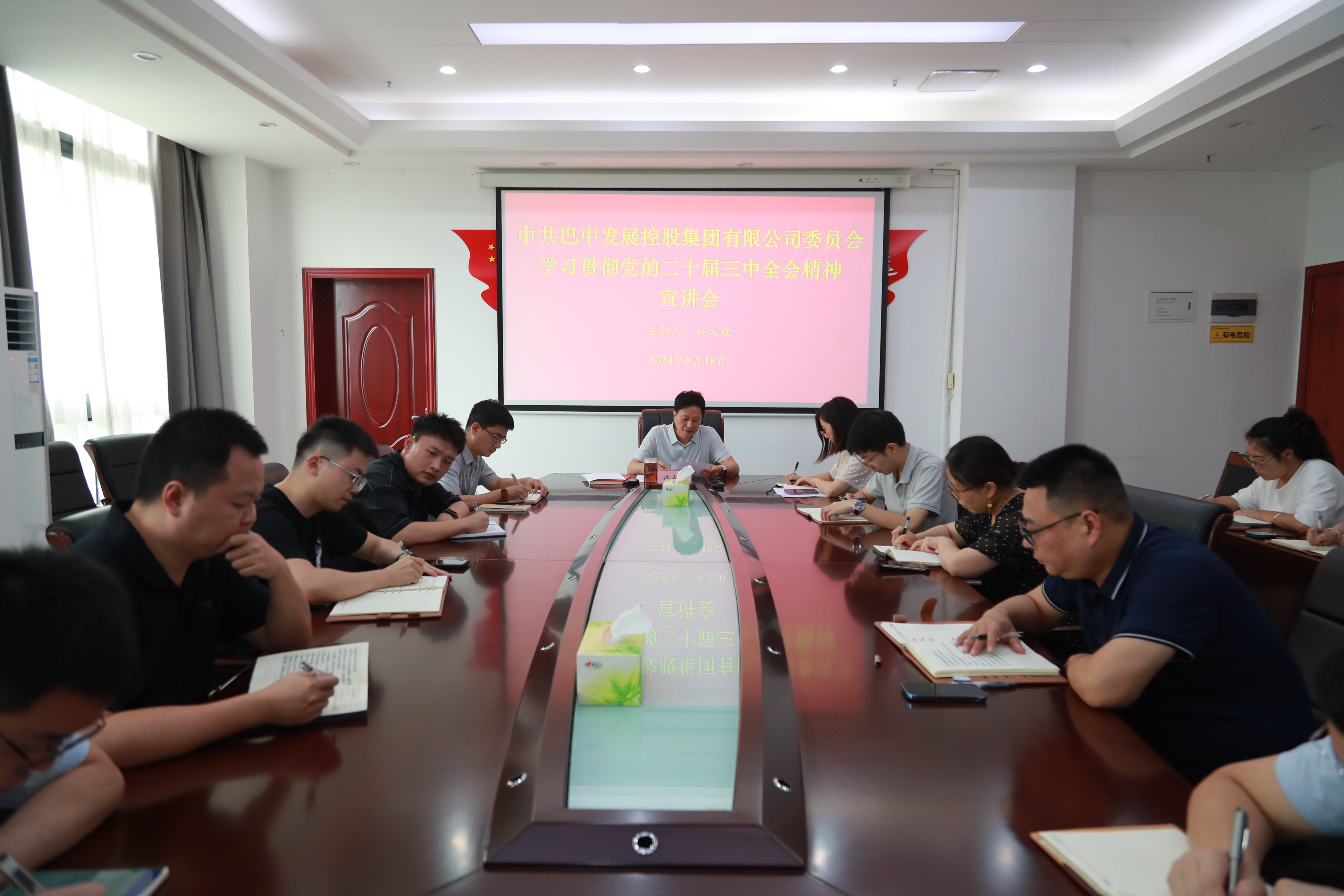 9月18日,集團(tuán)黨委書(shū)記、董事長(zhǎng)許大政對(duì)黨的二十屆三中全會(huì)精神開(kāi)展了宣講,集團(tuán)本部全體干部職工參加宣講會(huì)議。